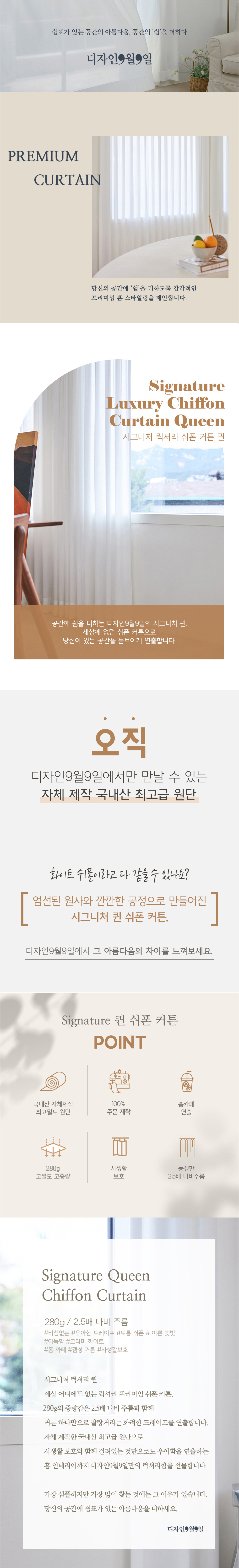 디자인9월9일만의  시작부터 끝까지 아름다운 럭셔리 차르르 쉬폰 커튼