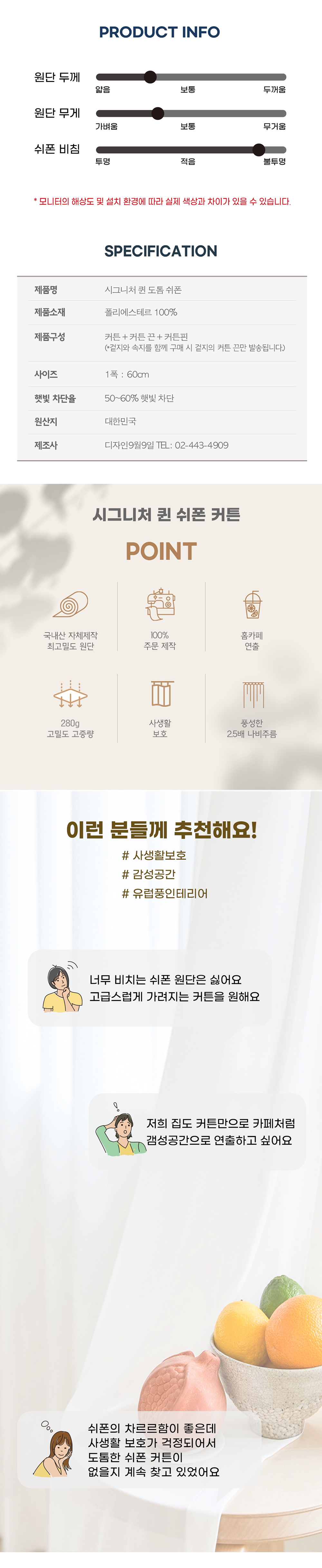 시그니처 퀸 280g 프리미엄 럭셔리 도톰 쉬폰 커튼
